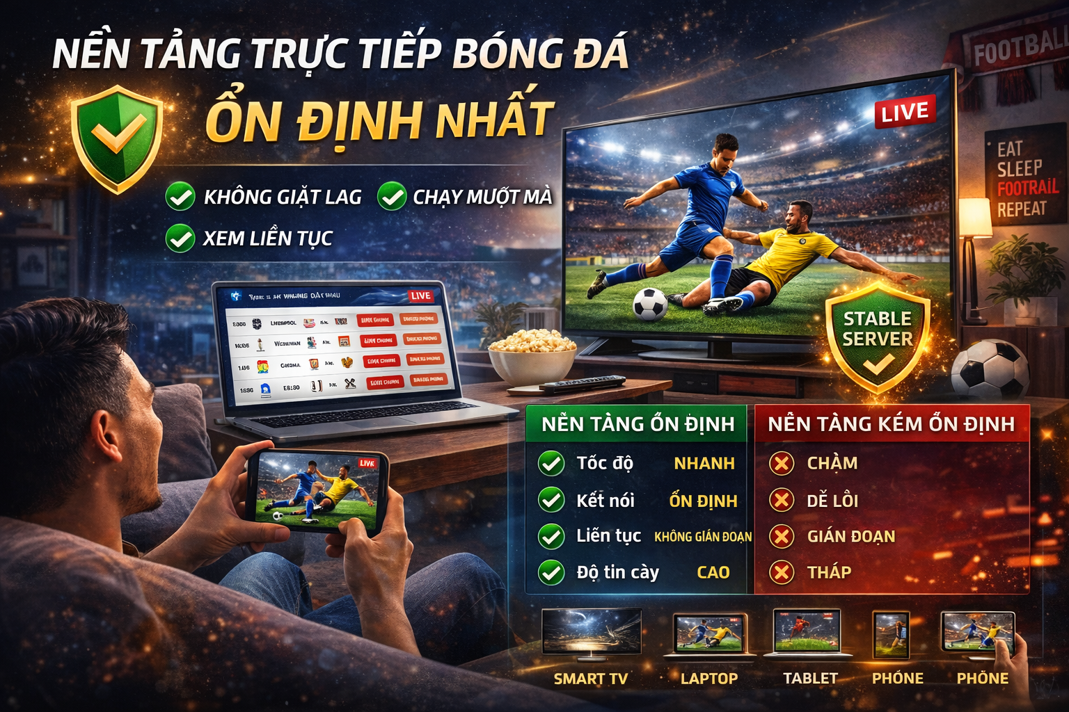 🎯 Mẹo giữ kết nối ổn định khi xem bóng đá